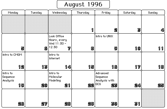 Bioinformatics Resource, Schedule of Classes