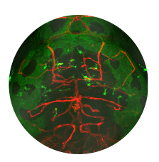 Microglia are resident macrophages of the CNS that are essential for phagocytosis of apoptotic neurons and weak synapses during development. Using forward and reverse genetic approaches, we discovered that RagA and Lamtor4, two components of the Rag-Ragulator complex, are essential regulators of lysosomes in microglia (Shen et al. 2016, Cell Reports 14: 547-559). In zebrafish lacking RagA function, microglia exhibit an expanded lysosomal compartment, but they are unable to properly digest apoptotic neuronal debris. Our analysis reveals an essential role of the Rag-Ragulator complex in proper lysosome function and phagocytic flux in microglia. We are currently working to define the mechanisms by which the Rag-Ragulator complex regulates lysosomes, and to define the function of RagA in other cell types.