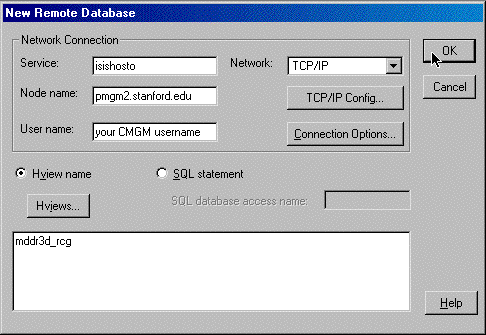 Don't forget to enter the Database Name "mddr3d_rcg"