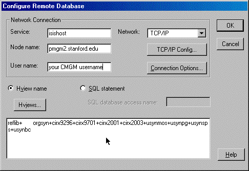 Fill in the Service Name, Node Name, User Name and the names of all the reaction databases.